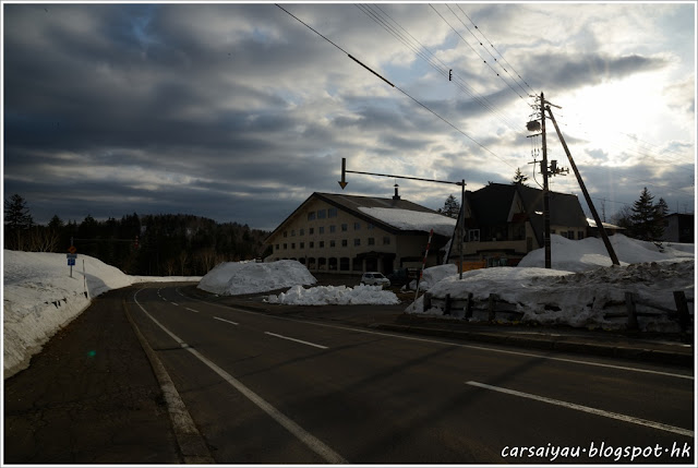 跟著就去今晚住宿的地方, 旭岳溫泉的湯元湧駒莊, 起初有點擔心去旅館條路會有積雪, 而架車仔又唔夠力行雪路, 好彩無事, 雖然沿路兩旁的積雪很高, 但路上就沒有積雪, 路過的水霸