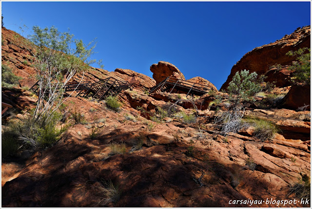 Kings Canyon Rim Walk要上斜的地方不多, 大概只有兩小段, 第一段就在這裡, 約行十分鐘梯級, 算是整條步道最艱辛的段路, 所以Kings Canyon Rim Walk不算難行, 難在氣溫太高, 不宜户外活動吧了