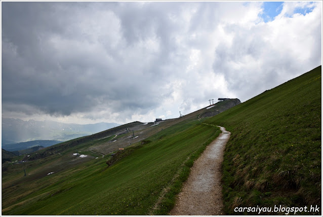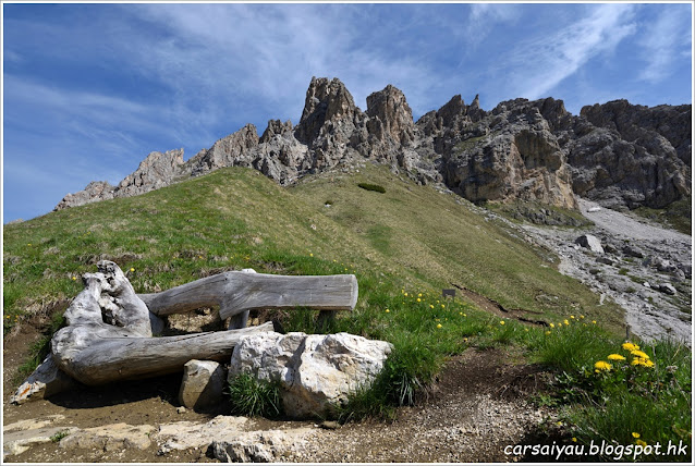 今日原意係留來補去一啲有阻滯或者想重遊嘅景點, 所以未有計劃行程, 既然Sassolungo果邊天色咁好, 決定重遊兩個景點, 先去附近的Sassolungo, 之後再遊Seceda, 約十五分鐘車程來到Passo Sella, 將車泊在纜車站旁的停車場, 收費續次計, 每次6歐, 今日天氣比上次好, 好清楚睇晒三個山峰