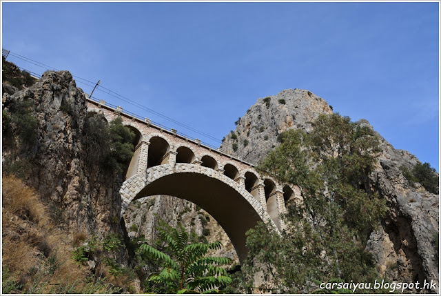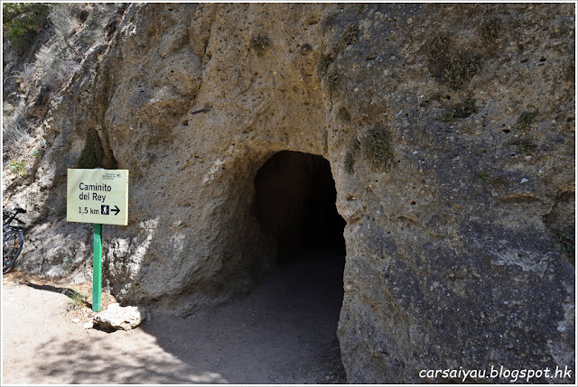 匆匆忙忙離開Setenil de las Bodegas小鎮, 就係為咗趕14:45集合、15:00入場的El Caminito del rey國王步道, 由小鎮往國王步道五十多公里路, 約一小時車程, 呢個行步道都好受歡迎, 官網會提前三個月開放預約, 每日分時段入場, 限制每日每時段嘅人數, 門票分別General ticket及Guided visit ticket, 一般門票最受歡迎, 10歐一位, 可以自由行走步道, 步道路線是單向式, 由北口開始至南口完結, 所以門票亦有選項可加入往來南北口之間的接駁巴士, 當時每位價錢係1.55歐, 我哋計劃將車泊北口停車場, 行完步道之後坐巴士返北口攞車, 另外亦可以選擇先泊車喺南口停車場, 跟著坐巴士去北口, 再開始行步道, 然後由南口揸車走人, 官網有介紹相關交通資訊。為咗參加呢個活動, 之前嘅行程都要稍微改動遷就, 所以怕遲到無得入場, 白費之前嘅功夫, 最後總算趕到, 大約在兩點半到達泊好車, 跟著仲要行1.5公里到集合點, 首先由停車場過對面馬路搵呢個行人隧道入口